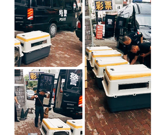 這兩只寶寶是(中國——菲律賓),狗狗狀態(tài)非常好,帶他們上完廁所,準(zhǔn)備隨機(jī)進(jìn)入有氧艙一起起飛。